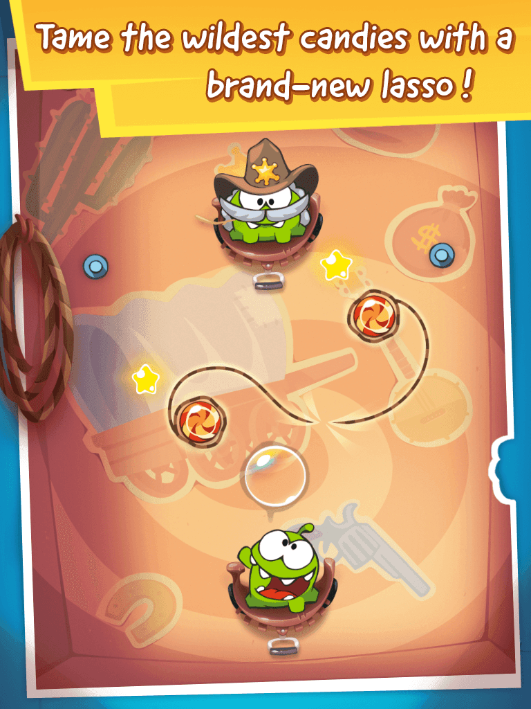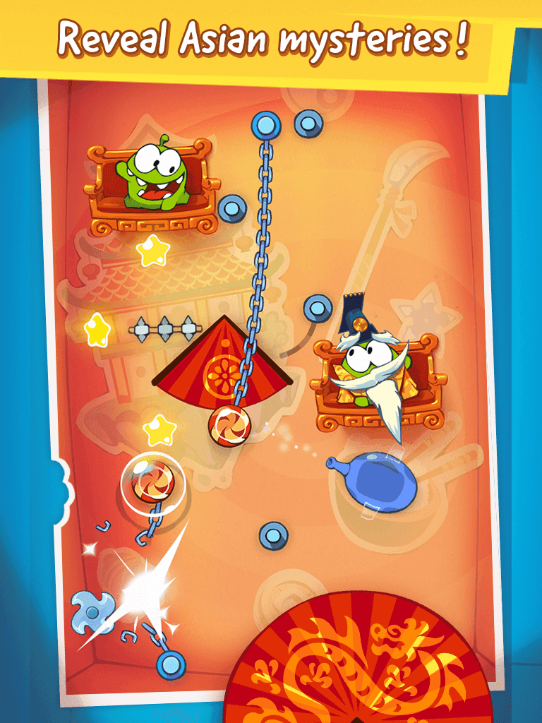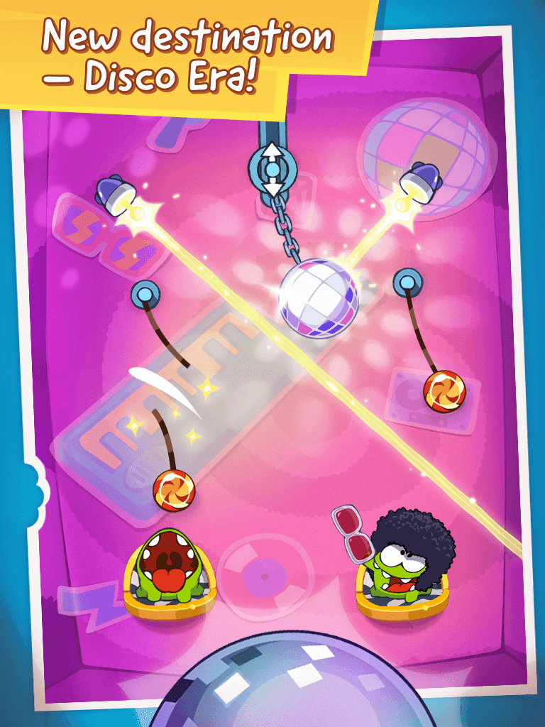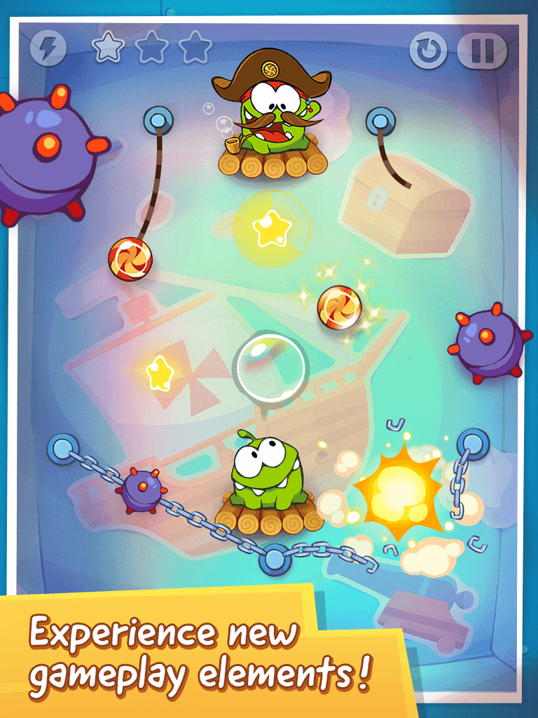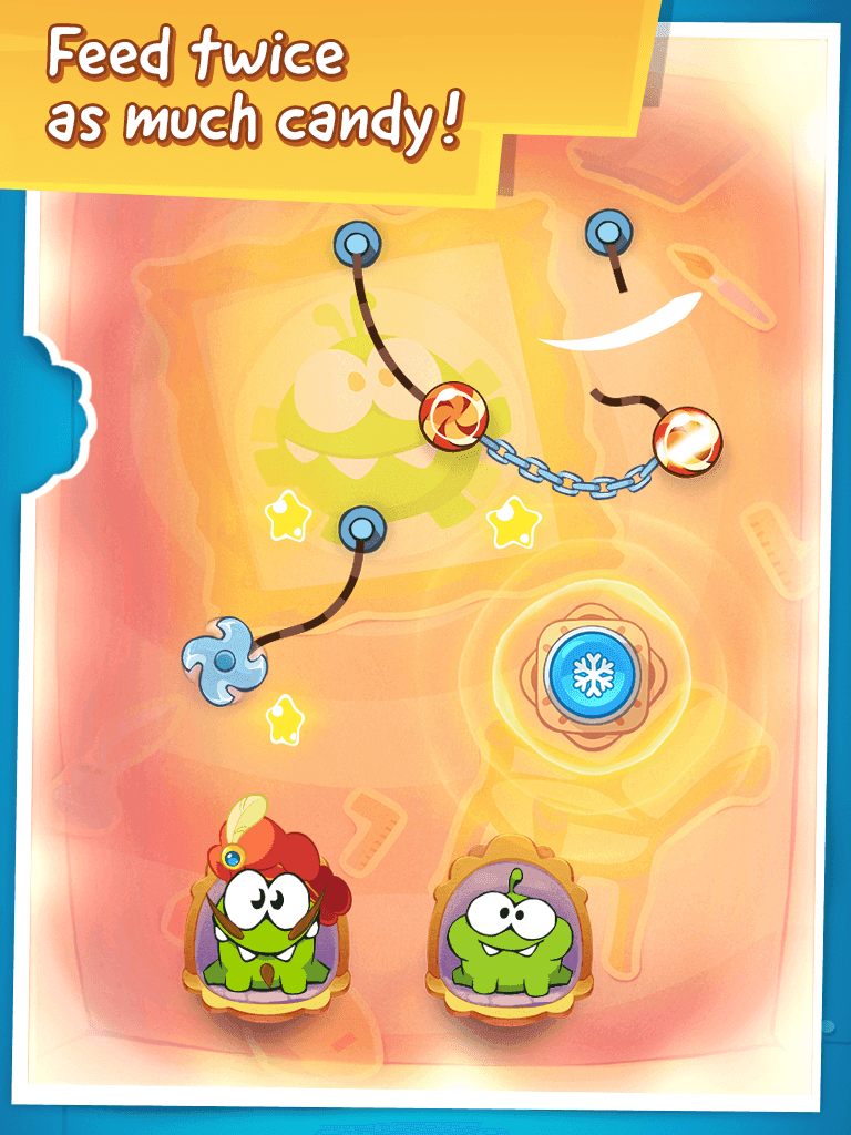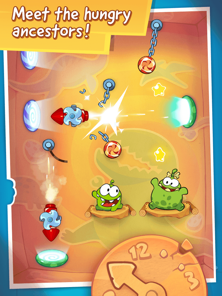 There’s no time to waste! Visit exciting locations including the Middle Ages, the Renaissance, a Pirate Ship, Ancient Egypt, Ancient Greece, the Stone Age, Disco Era, Wild West, Asian Dynasty, and Industrial Revolution. Om Nom’s ancestors are waiting – and they’re getting really hungry for candy!